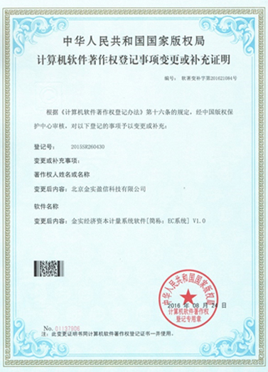 - 經(jīng)濟資本計量系統(tǒng)軟件著作權(quán)登記證書
