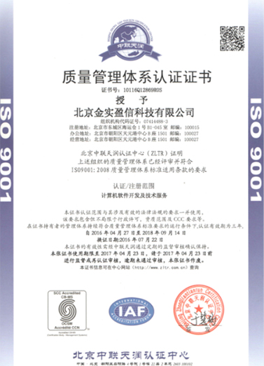 - 金實盈信ISO9001質(zhì)量管理體系認證證書